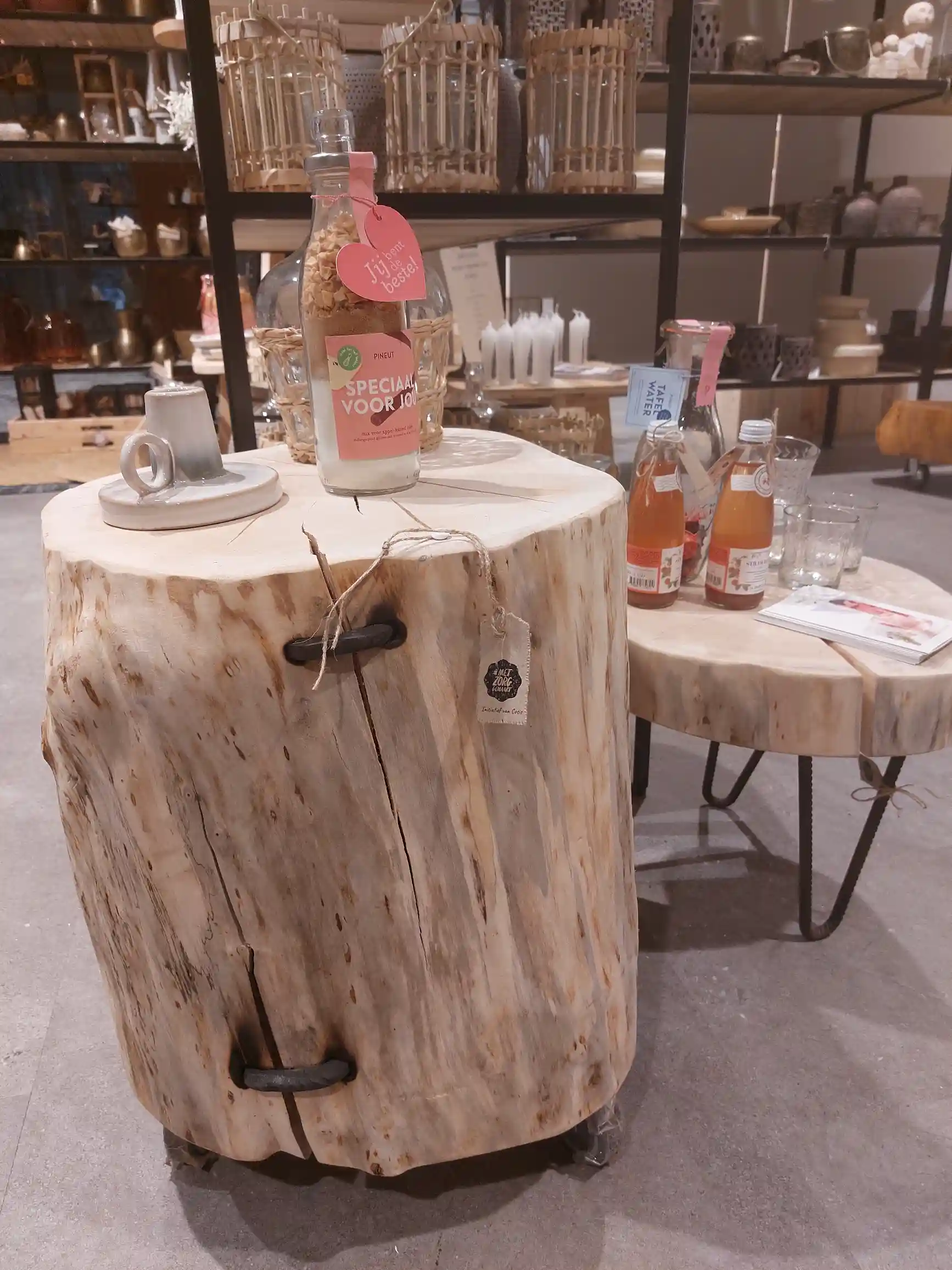 In onze hippe woonwinkel op de begane grond van woonmall: 'Kruit & Kramer' vind je de leukste #metzorggemaakt kleine meubels en woonaccessoires. Denk aan stoere tuinmeubels, houten krukjes, sfeervolle kaarsen, versieringen voor aan de muur, koekjes van eigen deeg en nog veel meer.